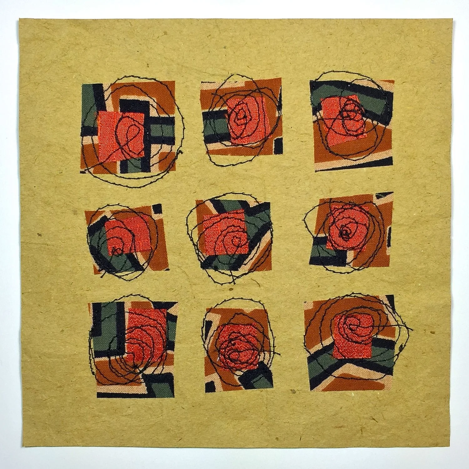 Rose Patch - Paper, cotton, silk, fused and machine stitched