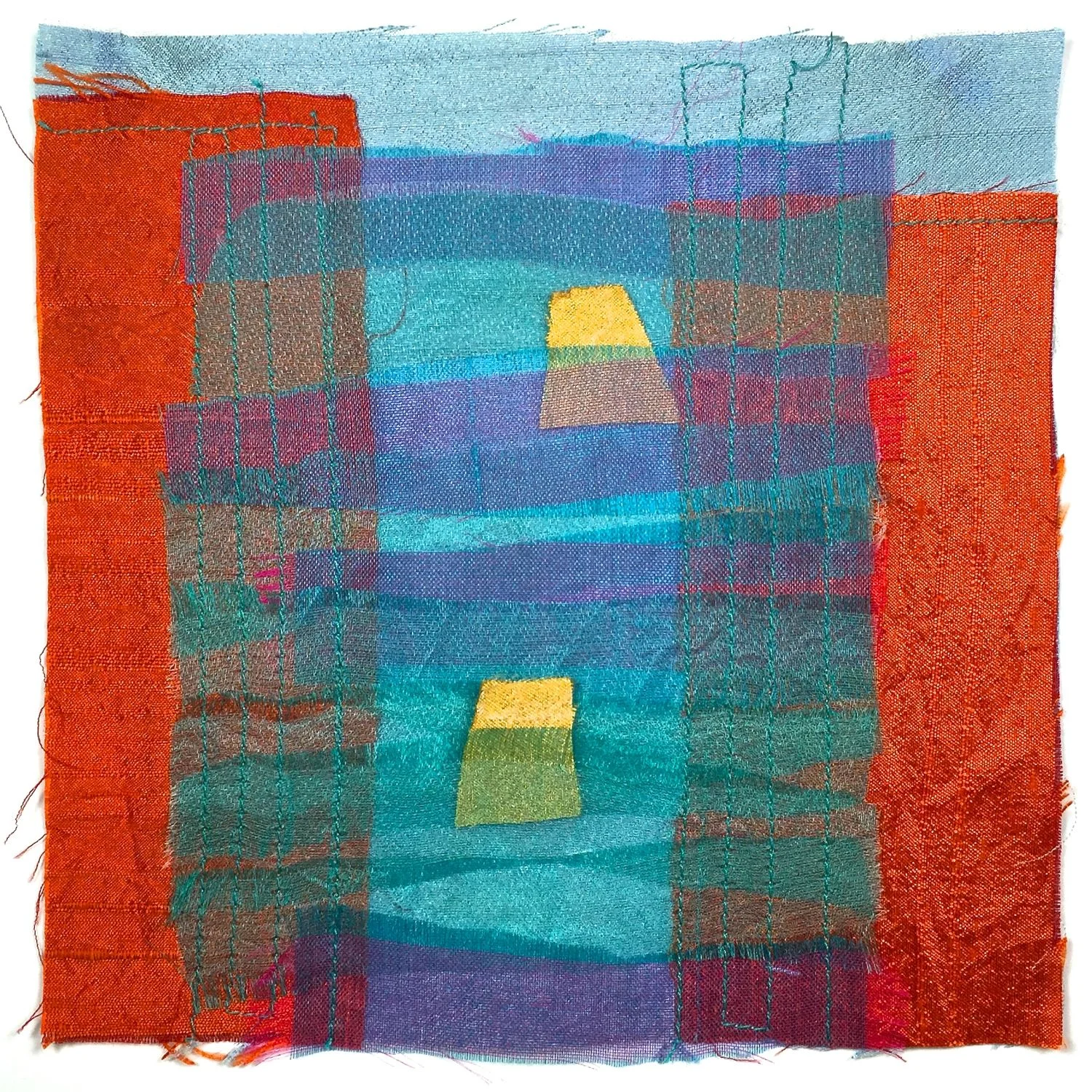 Frayed Horizon - Cotton & Silk, machine stitched